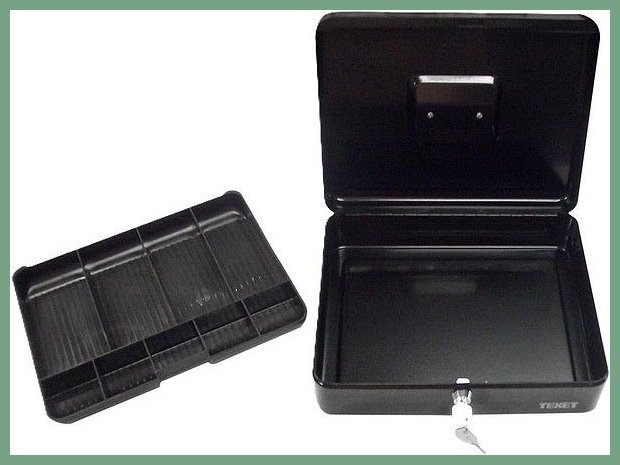 Kassalipas Suuri 12" /30cm musta avainlukolla. Tämän erinomaisen turvallisuustuotteen toimituksen kesto verkkokaupasta tilattuna 1-2 päivää. Ominaisuudet: Väri: musta. Lukko ja 2 avainta. Vahva metallirunko. Irrotettava kolikkoteline. Mitat: 300 × 247 × 88 mm. Koko: 12? (suuri). Paino: 1,72 kg. Tehokas toimituspalvelumme kuljettaa kassalippaan toimitusosoitteeseen kello 8.00 - 15.00. Turku, Oulu, Helsinki... eli kaikkialle Suomeen.