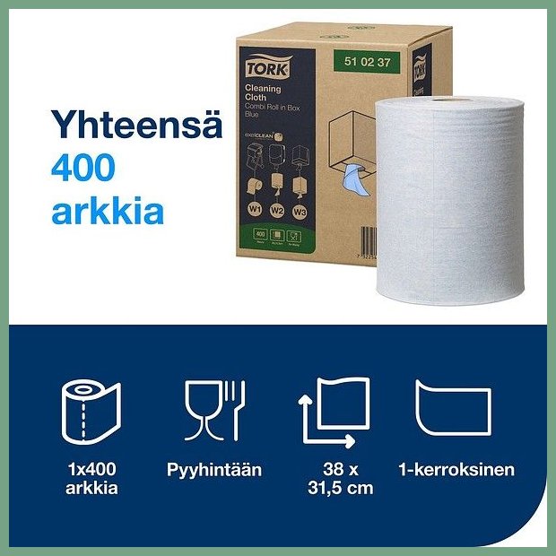 Tork-puhdistusliina pehmeä W1/2/3 sininen 400kpl rulla hinta 119,56€