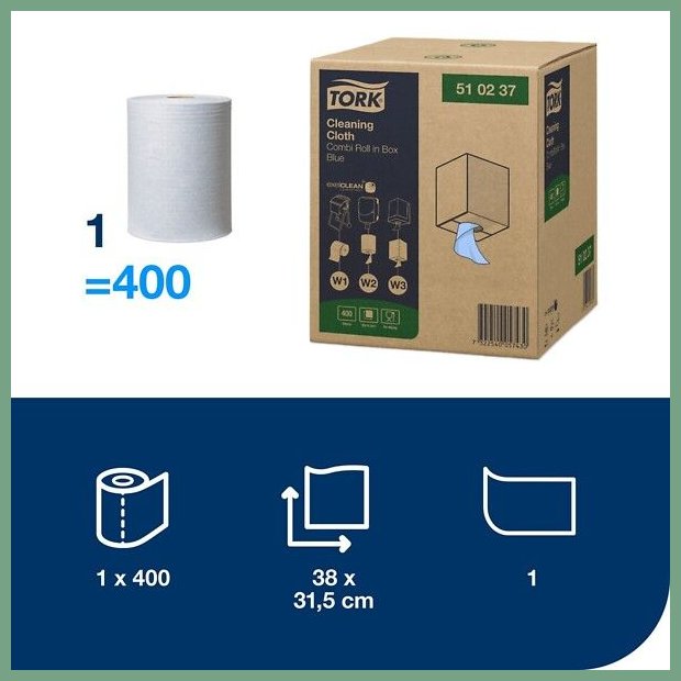 Tork-puhdistusliina pehmeä W1/2/3 sininen 400kpl rulla. Se on laadukas siivousväline, jonka verkkokauppa tilauksen kuljetus perille asti kestää 1-2 päivää. Tork W1 puhdistusliina on pehmeä mutta kestävä, monikäyttöinen puhdistusliina. Liina imee nopeasti sekä öljyn että nesteet ja on siksi ihanteellinen kevyeen pyyhintään. Rullaa voidaan käyttää Tork lattia- tai seinätelineissä sekä Tork Maxi vetopyyheannostelijassa ja Boxed Combi rulla-annostelijassa. Rullassa on 400 arkkia. Arkin leveys 32 vm ja arkin pituus 38 cm. Rullan halkaisija 25 cm ja hylsyn sisähalkaisija 7,1 cm. Luotettava kuljetuspalvelumme toimittaa tilauksen toimitusosoitteeseen klo 8 - 15 välillä. Kuopio, Turku, Helsinki... toisin sanoen kaikkialle Suomeen.